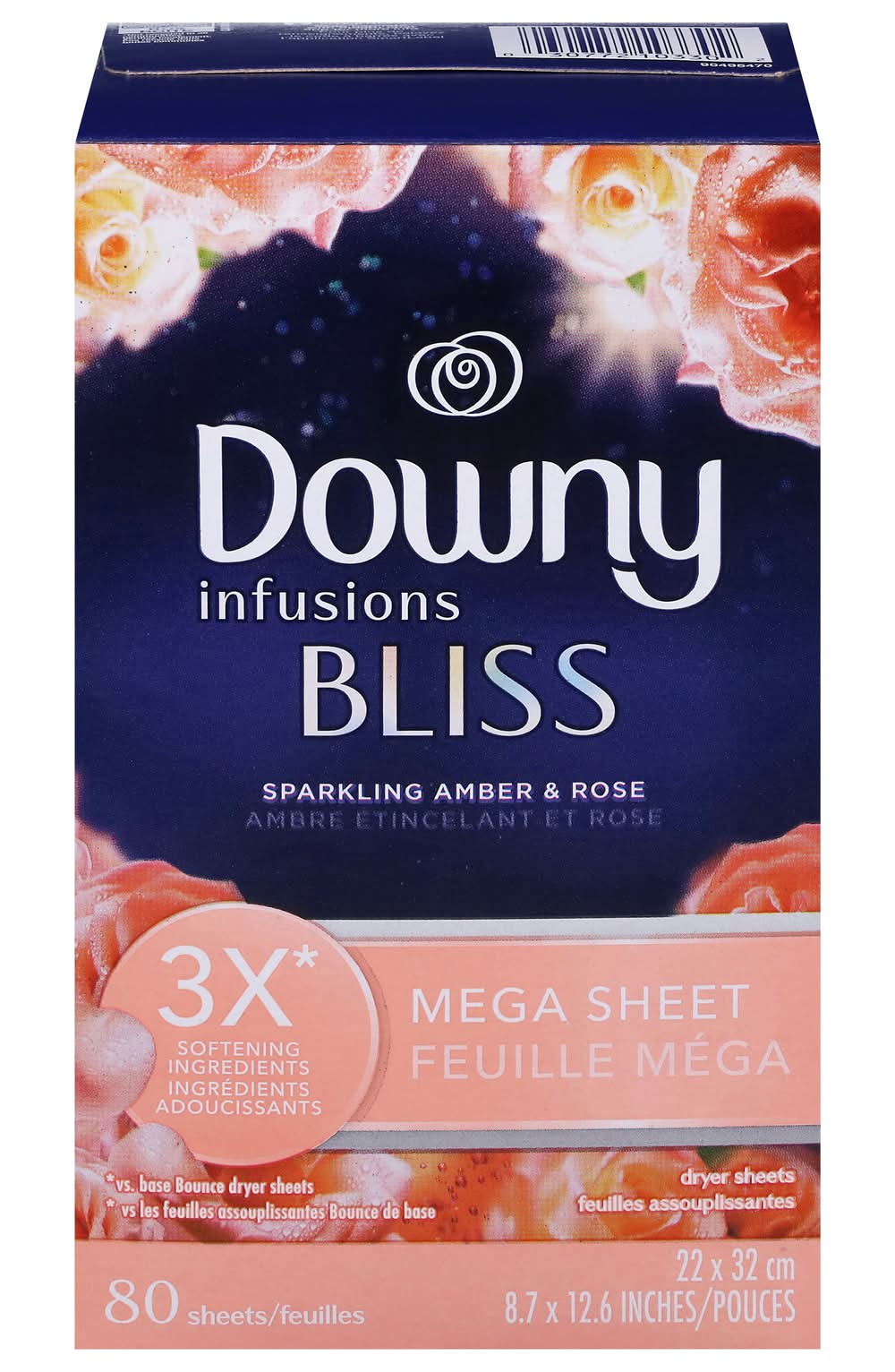 Downy Infusions Bliss Mega Dryer Sheets, Sparkling Amber - Rose (80 ct)