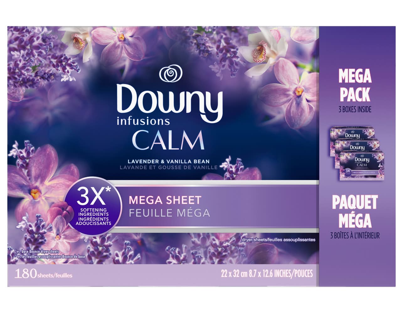Downy Infusions Mega Dryer Sheets Laundry Fabric Softener Calm, Lavender and Vanilla (180 ct)