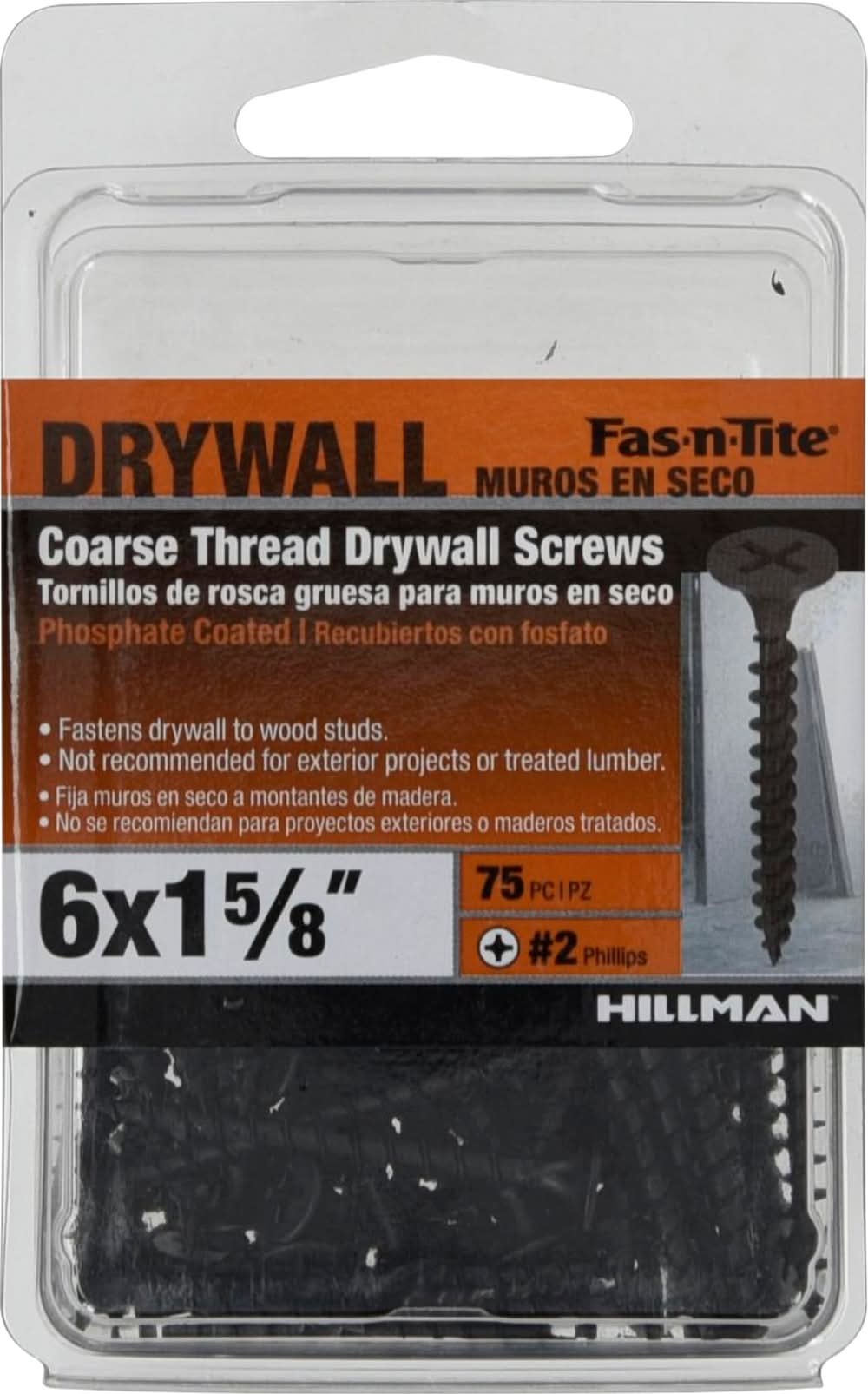 Hillman Fas Ntite Coarse Thread Drywall Screws, 6x1-5/8 in (75 ct)
