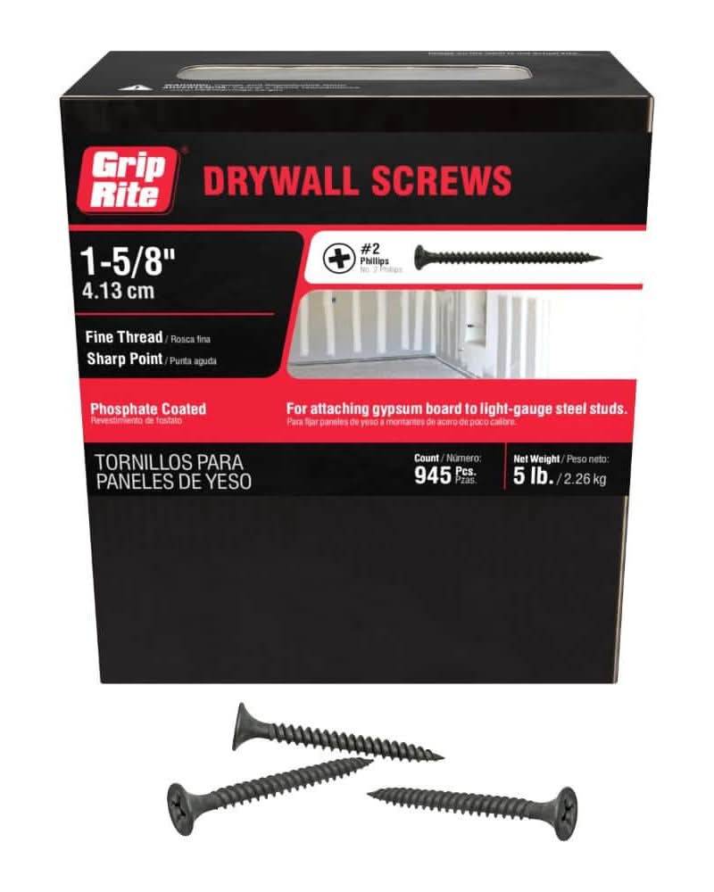Grip-Rite 2 Phillips Bugle Head Fine Thread Drywall Screws, 4.13 cm (5 lbs, 945 ct)