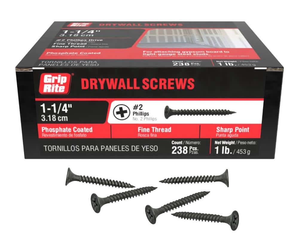 Grip-Rite Phillips Bugle Head Fine Thread Drywall Screws, 1-1/4 In (1 lbs, 238 ct)