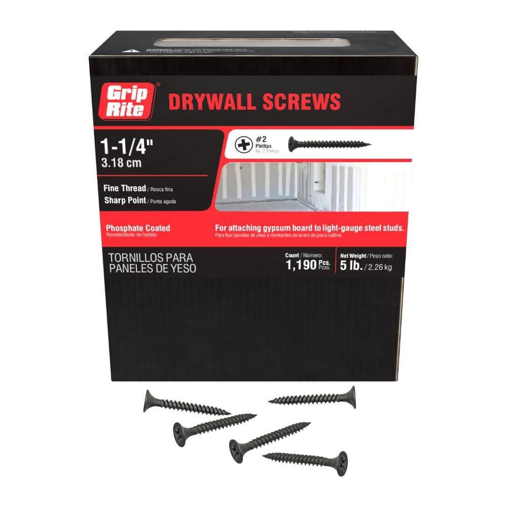 Grip-Rite Phillips Bugle Head Fine Thread Drywall Screws Box, 3.18 cm (5 lbs, 1190 ct)
