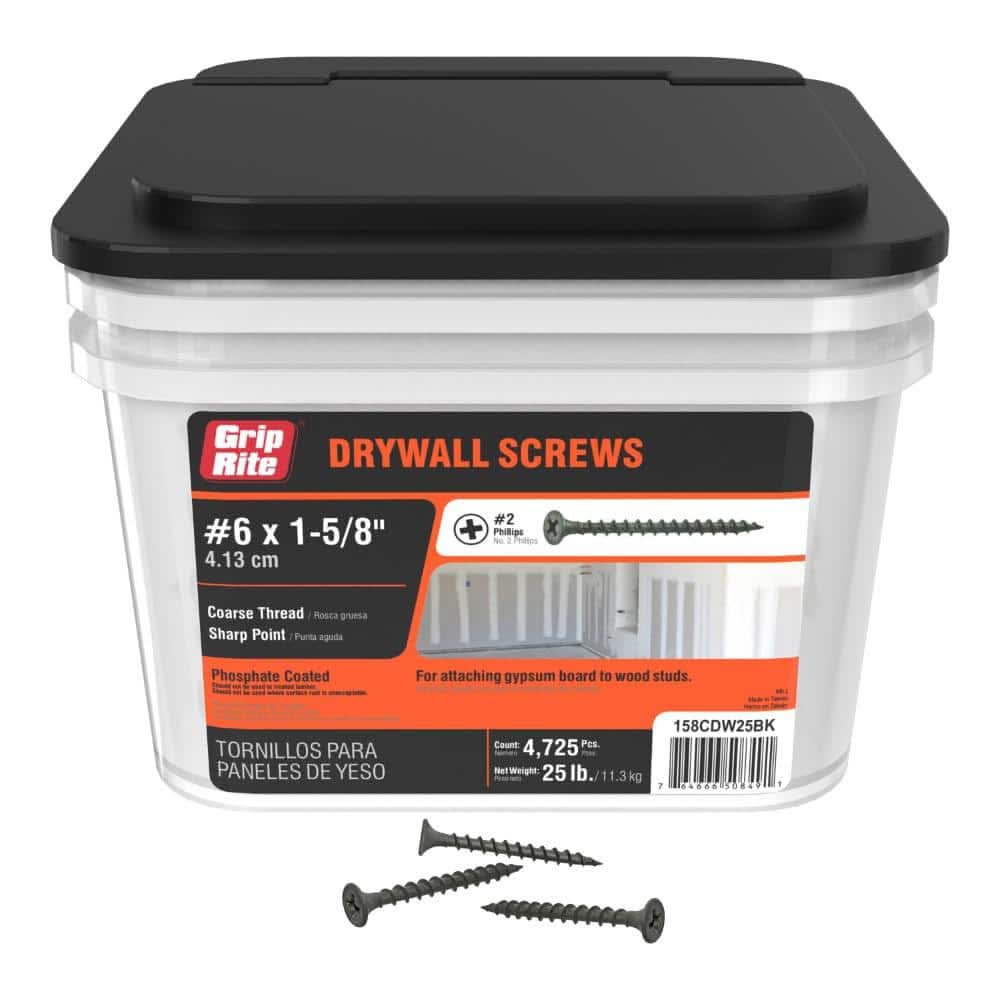 Grip-Rite Coarse Thread Drywall Screw, 6 x 1-5/8" (25 lbs, 4725 ct)