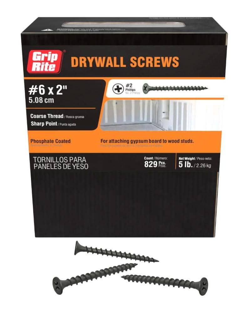 Grip-Rite Phillips Bugle Head Coarse Thread Drywall Screws, 5.08 cm (5 lbs, 829 ct)