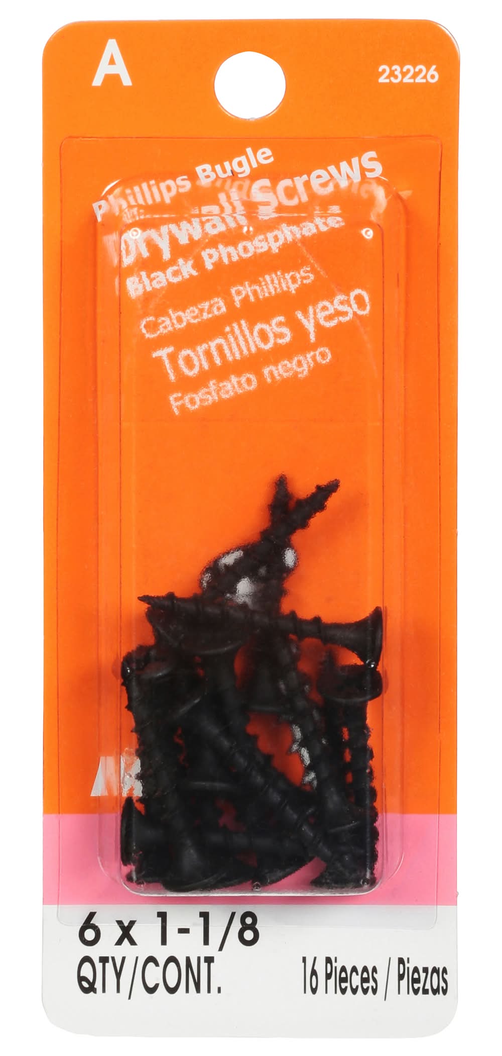 MF Midwest Phillips Bugle Drywall Screws, 6 x 1-1/8 In., Black (16 ct)