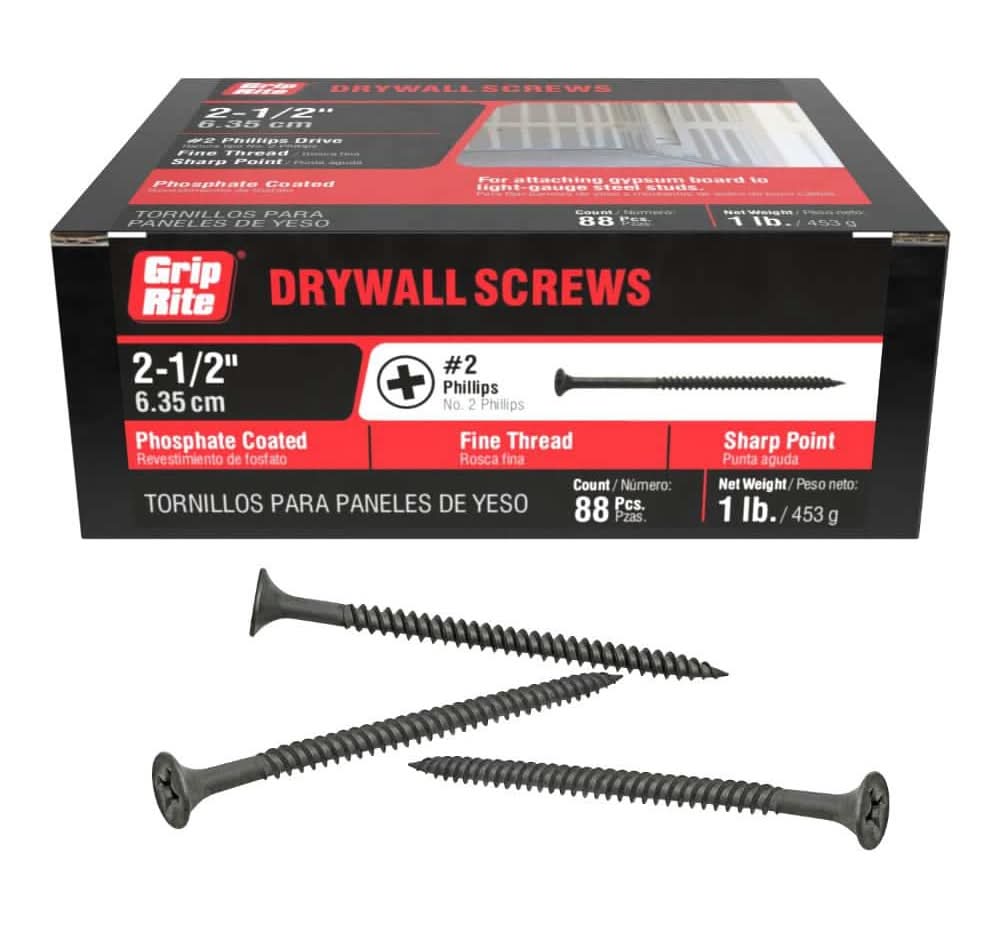 Grip-Rite Phillips Bugle Head Coarse Thread Drywall Screws Box, 8 X 2-1/2 Inch (1 lbs, 88 ct)