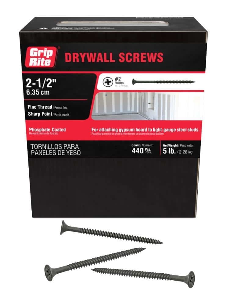 Grip-Rite Phillips Bugle Head Fine Thread Drywall Screws, 6.35 cm (5 lbs, 433 ct)