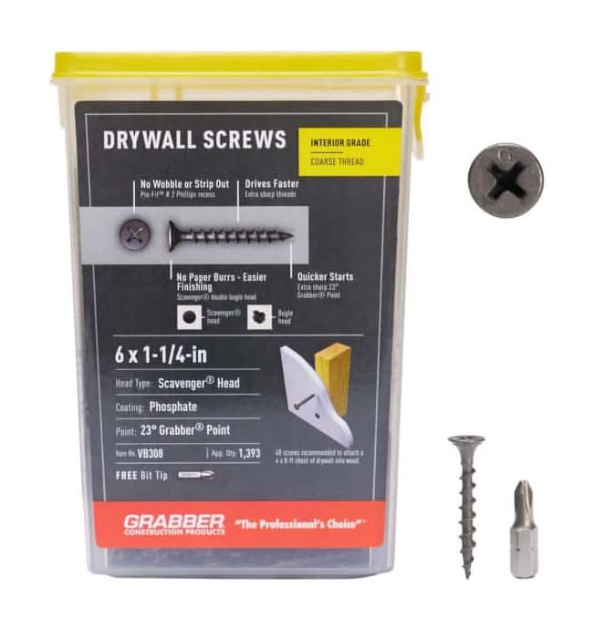 Grabber Phillips Scavenger Head Coarse Thread Drywall Screws, 6x1 in (1 lbs)