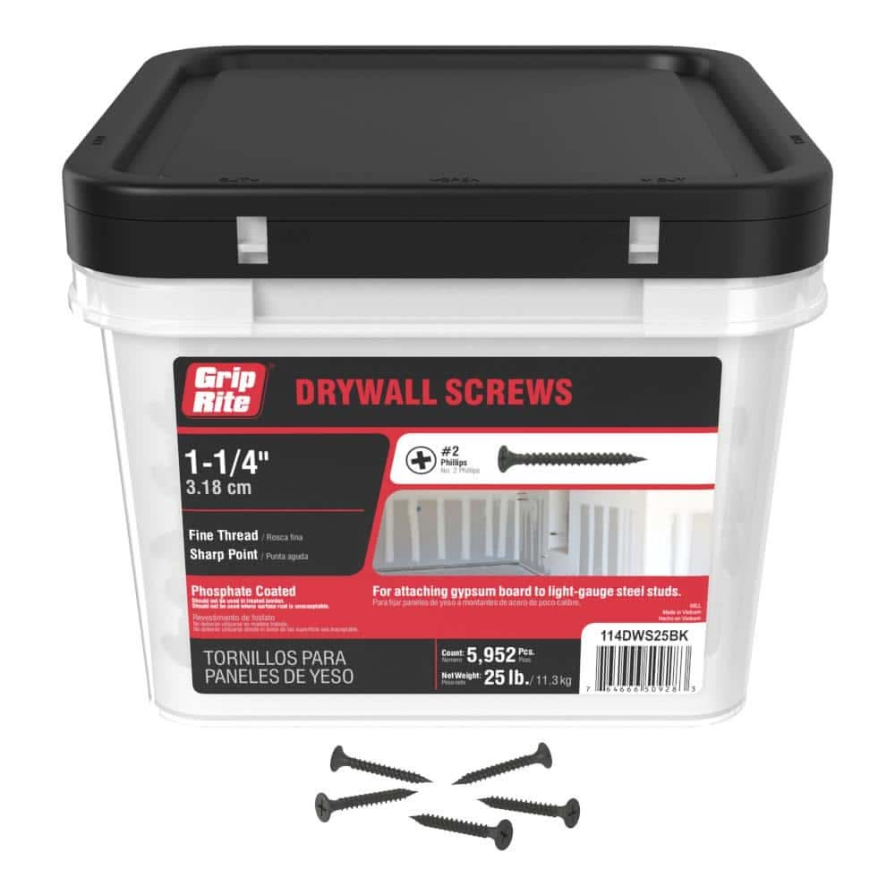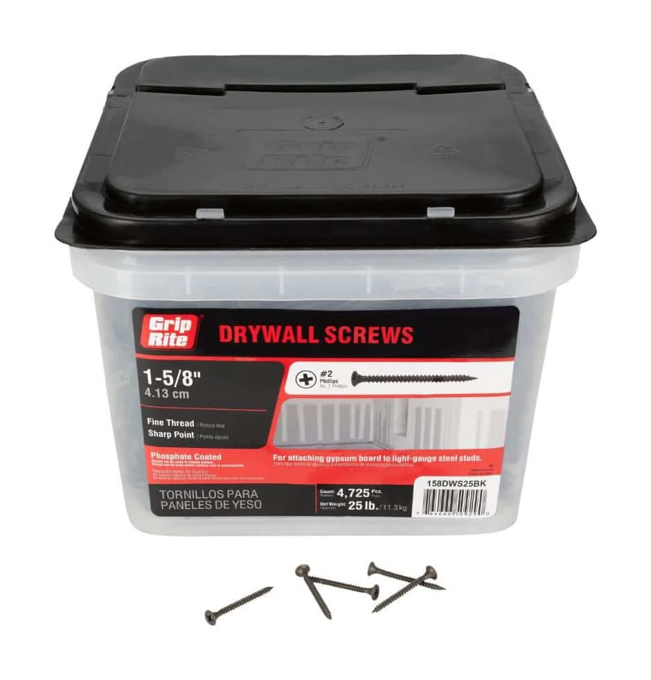 Grip Rite Phillips Bugle Head Fine Thread Sharp Point Drywall Screws Bucket (25 lbs, 5952 ct)