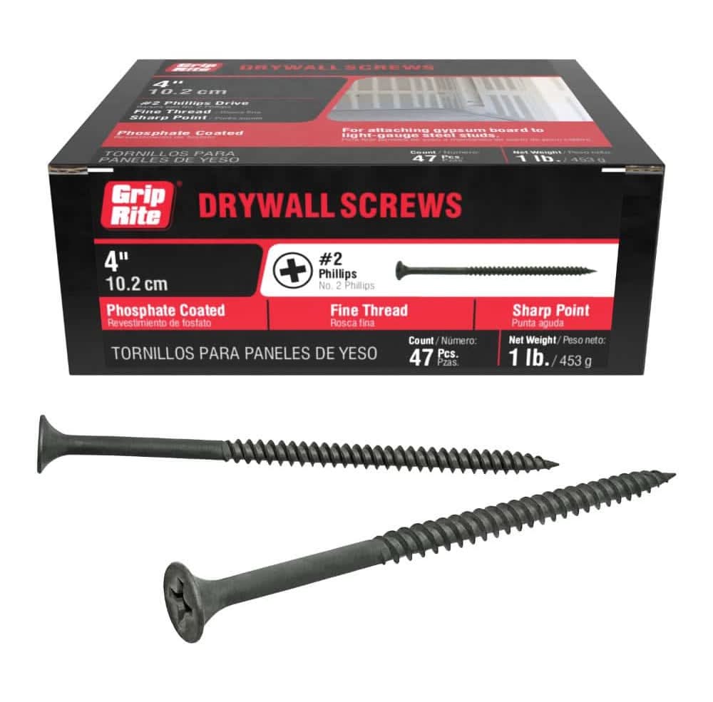 Grip-Rite Phillips Bugle Head Coarse Thread Drywall Screws, 10 In X 4 In (1 lbs, 47 ct)