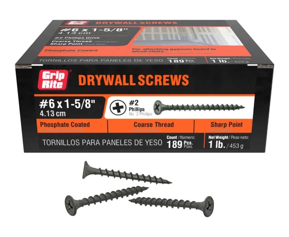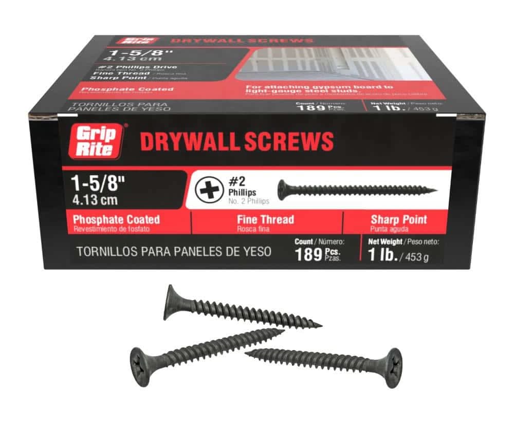 Grip-Rite Phillips Bugle Head Fine Thread Drywall Screws, 1-5/8 in (16 oz, 189 ct)
