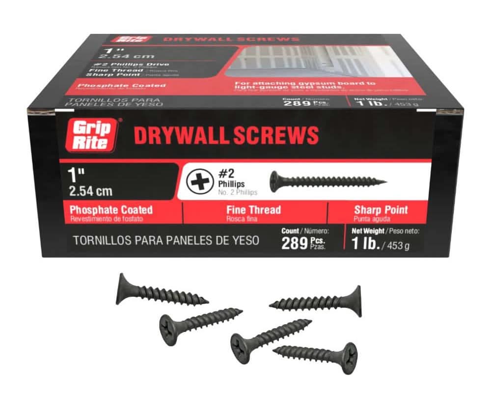 Grip-Rite Phillips Bugle Head Fine Thread Drywall Screws, 1 in (1 lbs, 289 ct)
