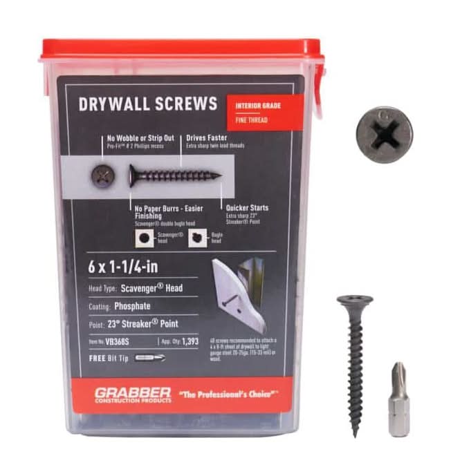 Grabber Pillips Scavenger Head Streaker Point Drywall Screws, 6x1 1/4 in