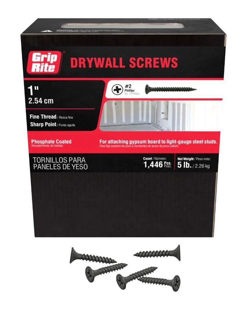Grip-Rite Bugle Head Fine Thread Drywall Screws #2 Phillips, 1 in (5 lbs, 1446 ct)