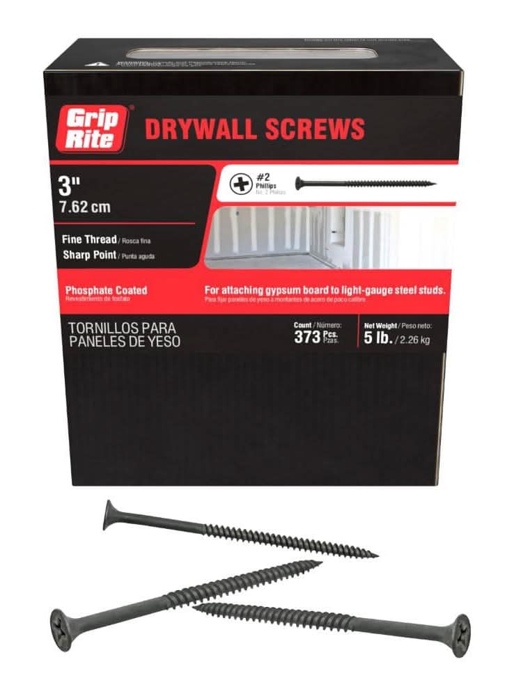 Grip-Rite Fine Thread Sharp Point Drywall Screws, 3 in (5 lbs, 373 ct)