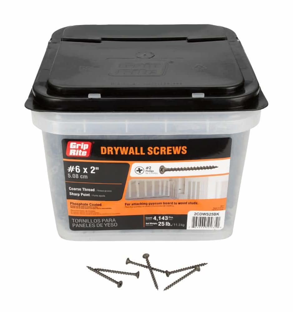 Grip-Rite Philips Bugle-Head Coarse Thread Sharp Point Drywall Screw, 6x2 in, Black (25 lbs, 4143 ct)