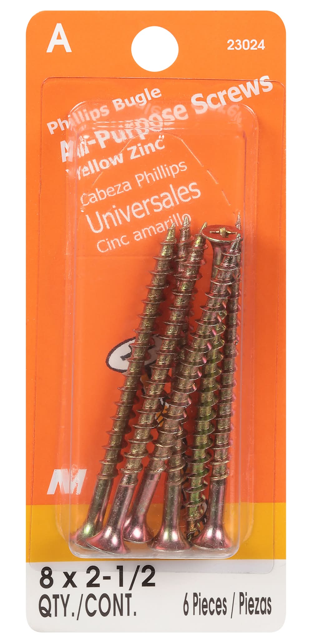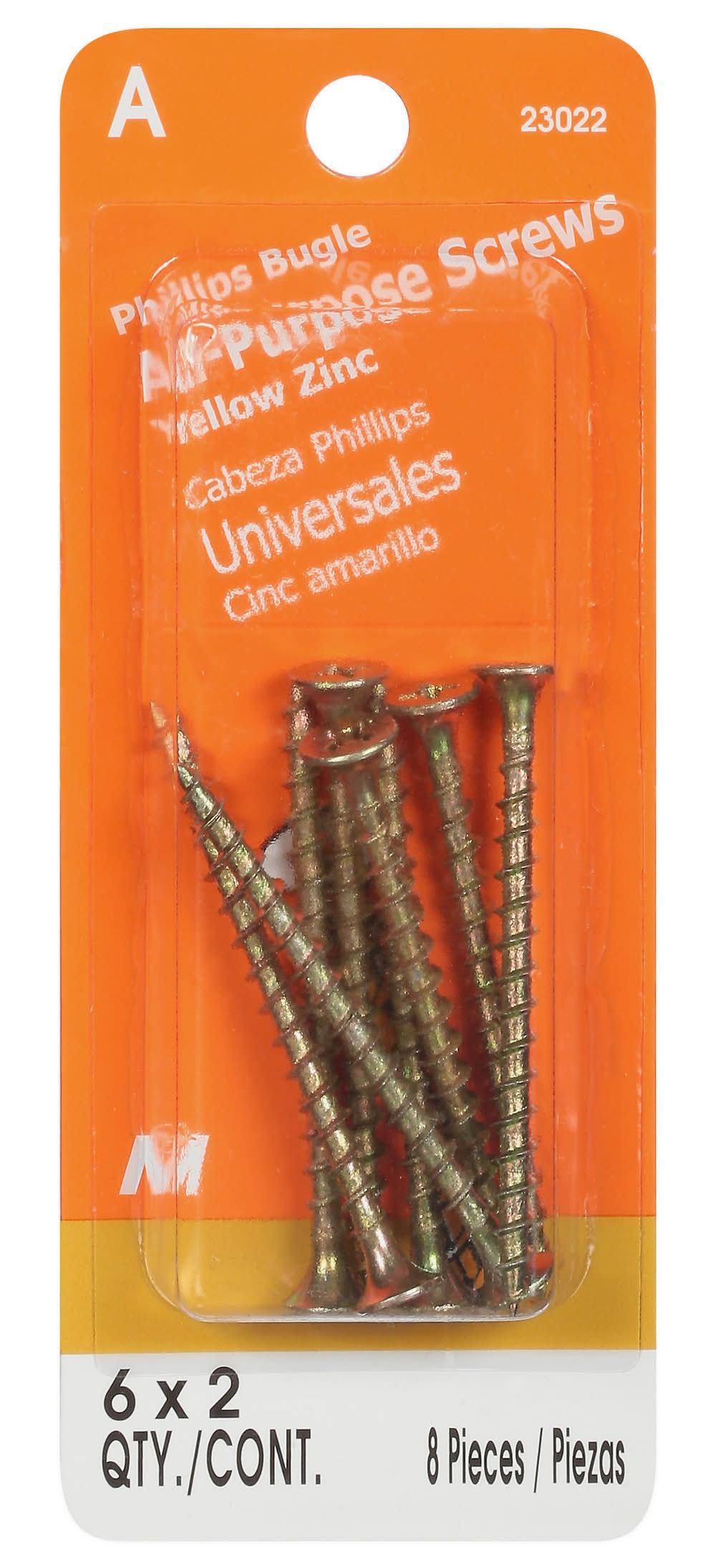 Midwest Phillips Bugle Yellow Zinc All-Purpose Screws, 8 * 2.5 (6 ct)