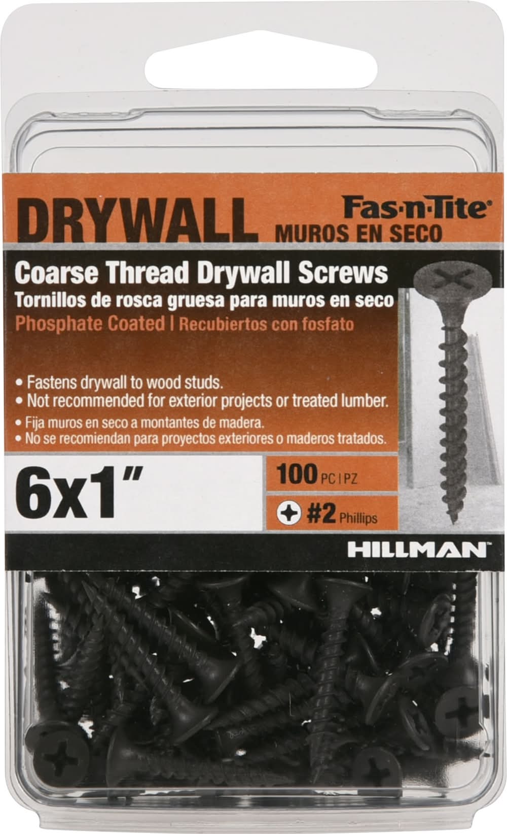 Hillman Fas-N-Tite Flat Coarse Thread Drywall Screws, 6x1 in (100 ct)