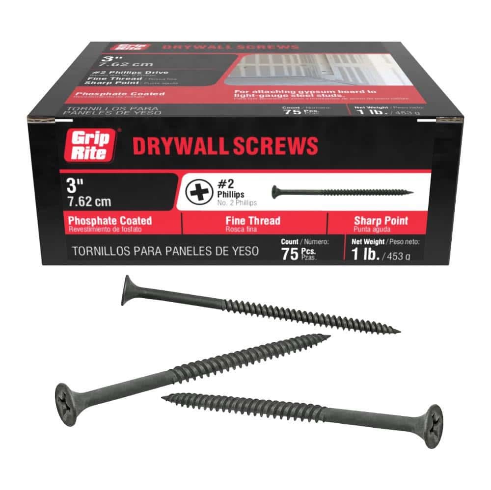 Grip-Rite Phillips Bugle Head Fine Thread Drywall Screws, 3" (1 lbs, 75 ct)