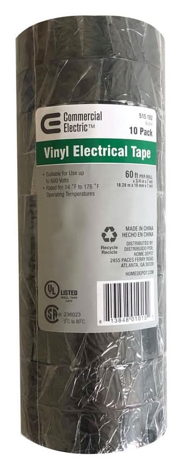 Commercial Electric Vinyl Electrical Tape, 60 ft, Black (10 ct)