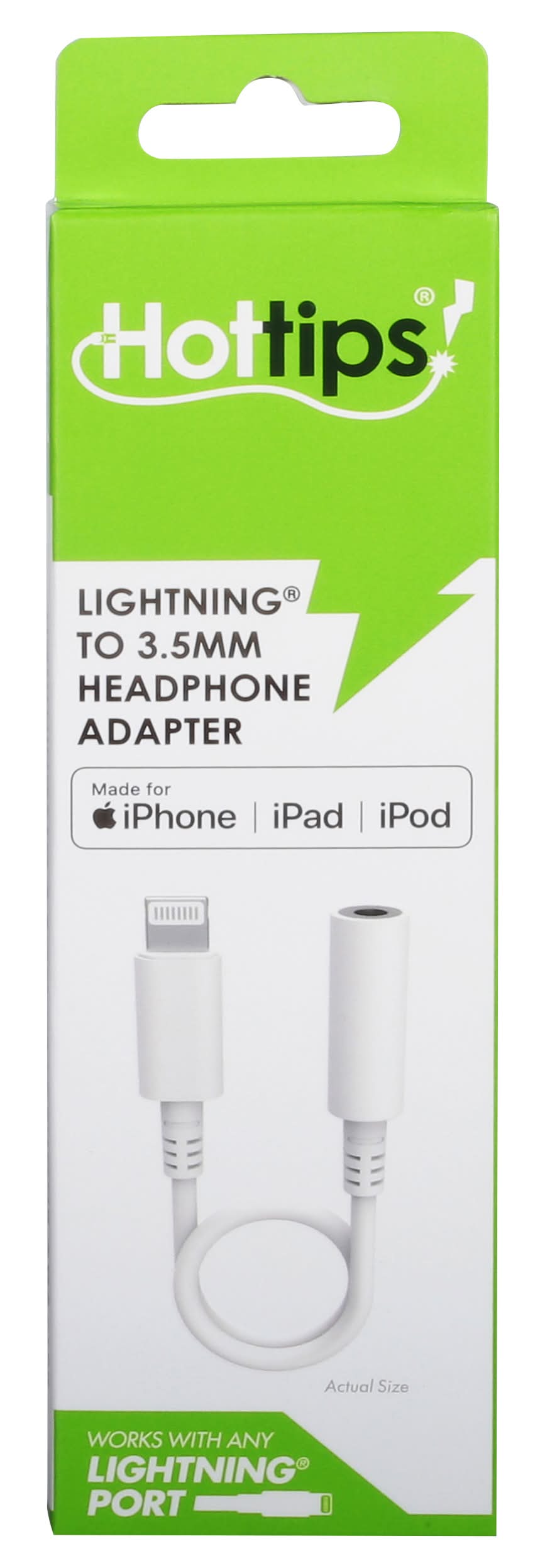 Hottips! Lightning To Headphone Adapter, 3.5mm, White