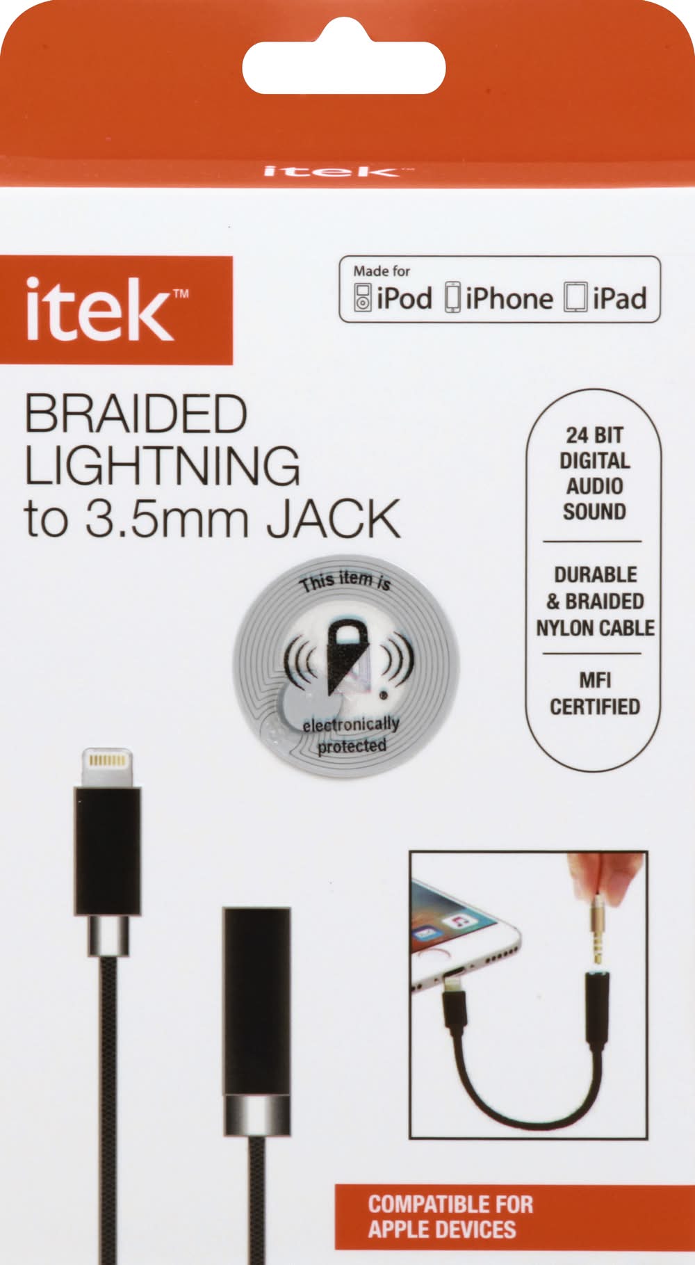 Itek Braided Lightning To 3.5mm Jack Cable For Apple Devices, Black-Silver-White