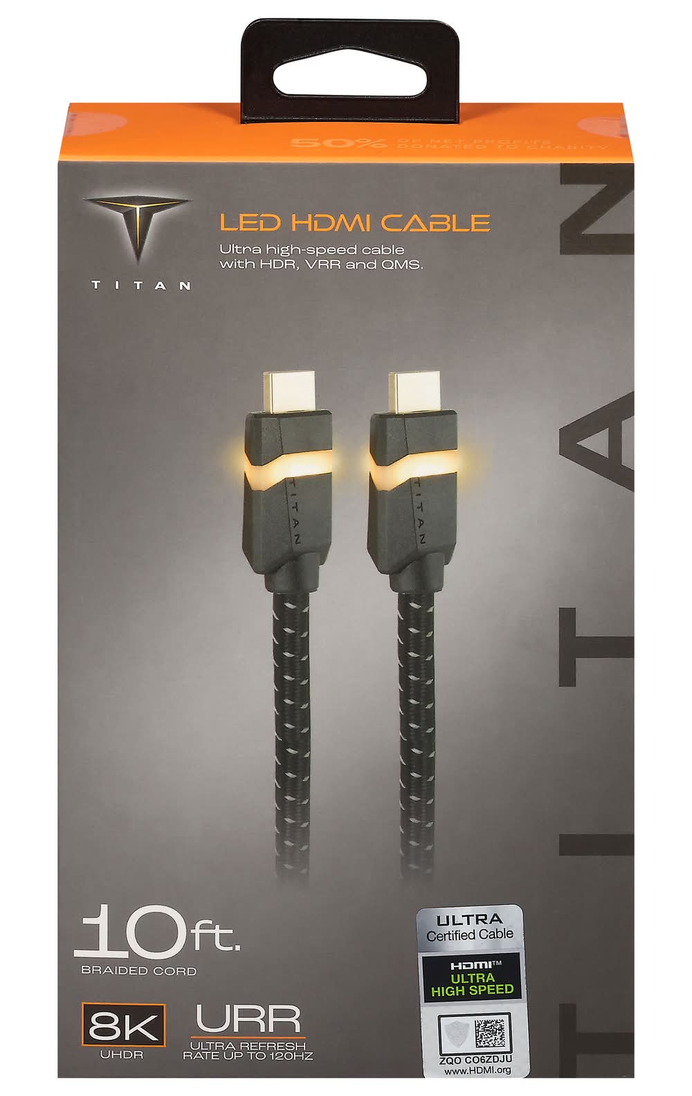 Jasco Titan 8k Hdmi 2.1 Cable Led Gaming Cable, 10 Ft, Black- Gold