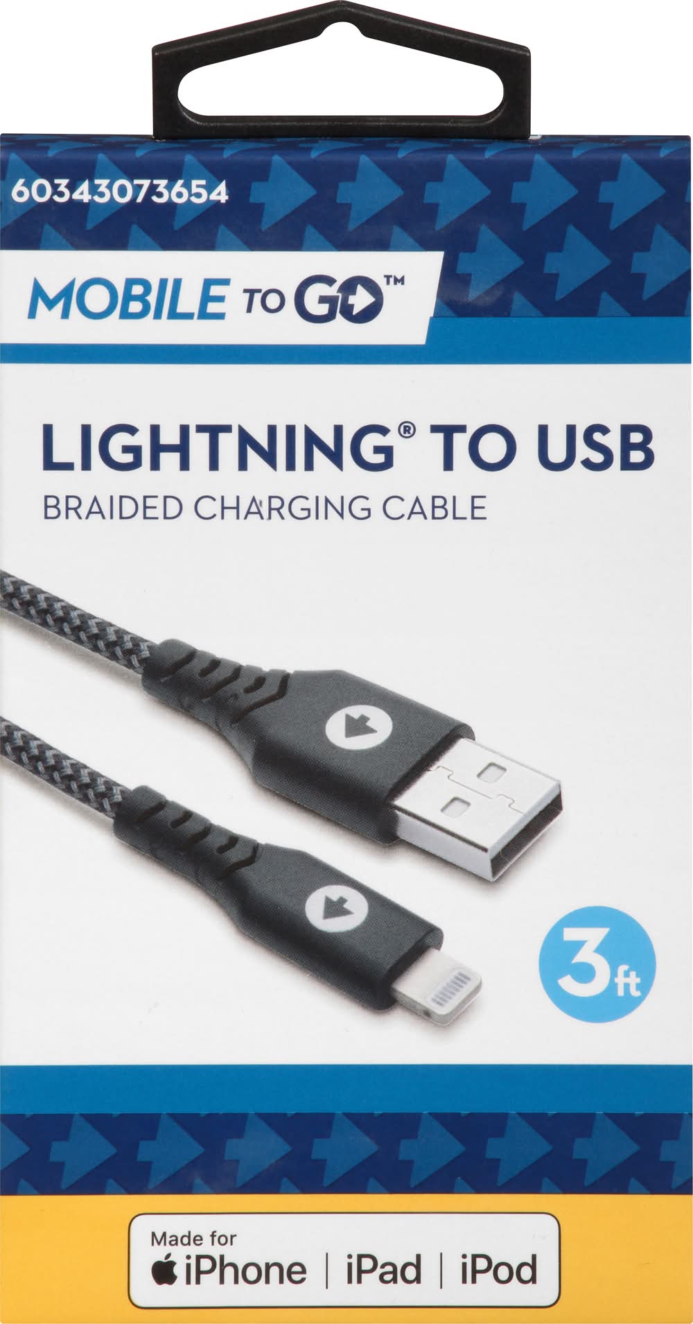 Mobile To Go Lightning To Usb Braided Charging Cable, 3 Feet