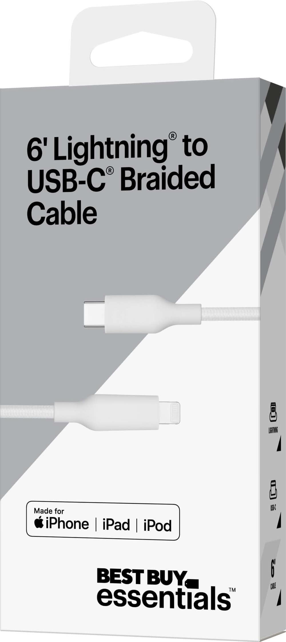 Best Buy Essentials Lightning To Usb-C Braided Charge Cable, 6 ft, White