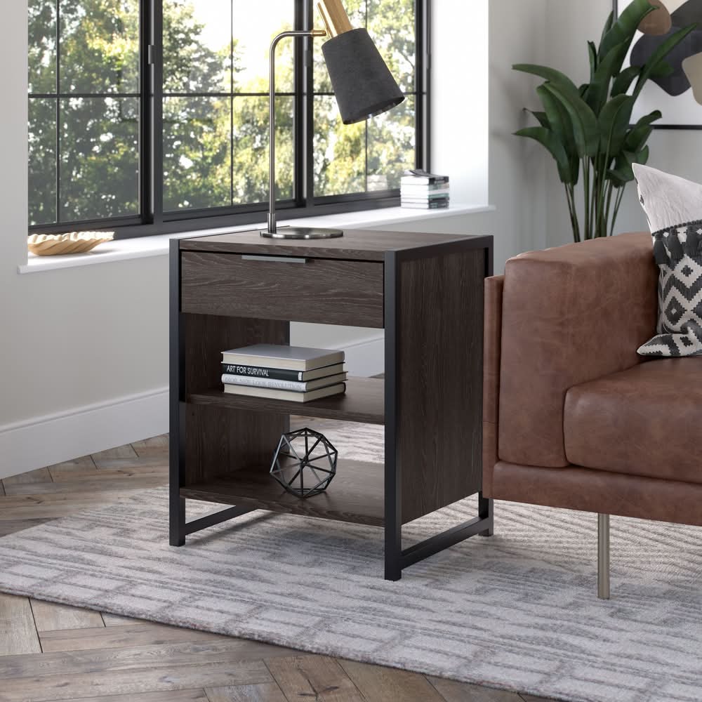 Bush Home Atria Small End Table With Drawer & Shelves, Charcoal Gray