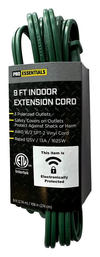 Pro Essentials Floor Tapper Indoor Extension Cord, 9 ft, Green