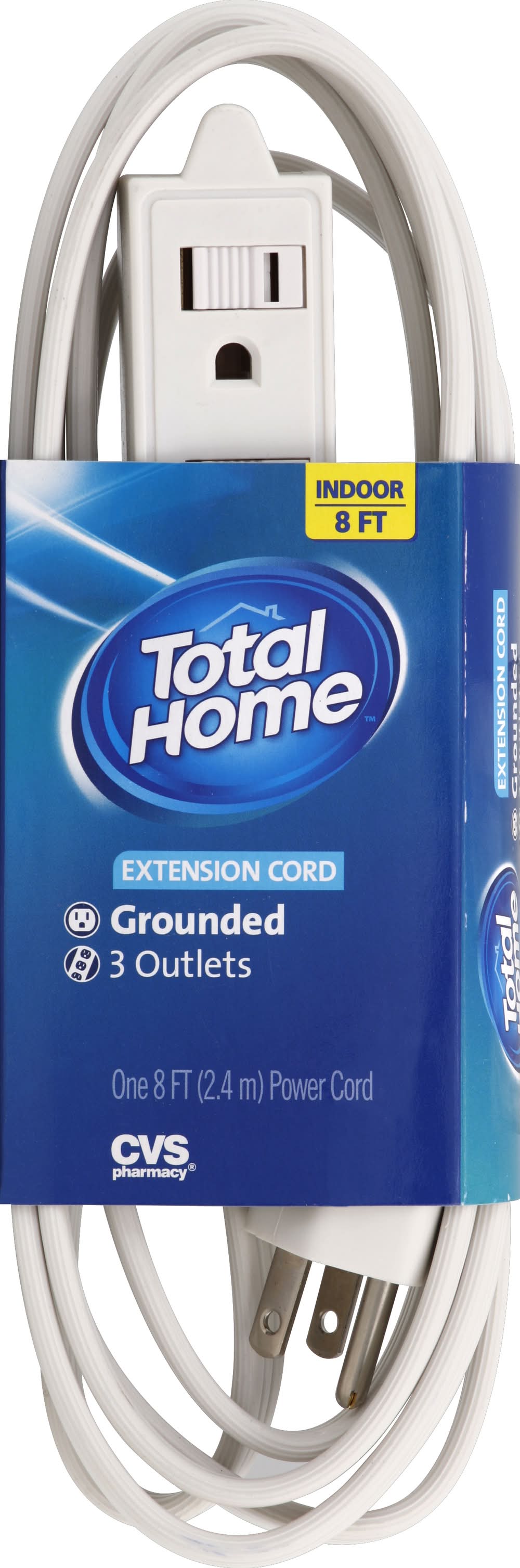 Total Home Indoor Grounded Extension Power Cord, 8 ft