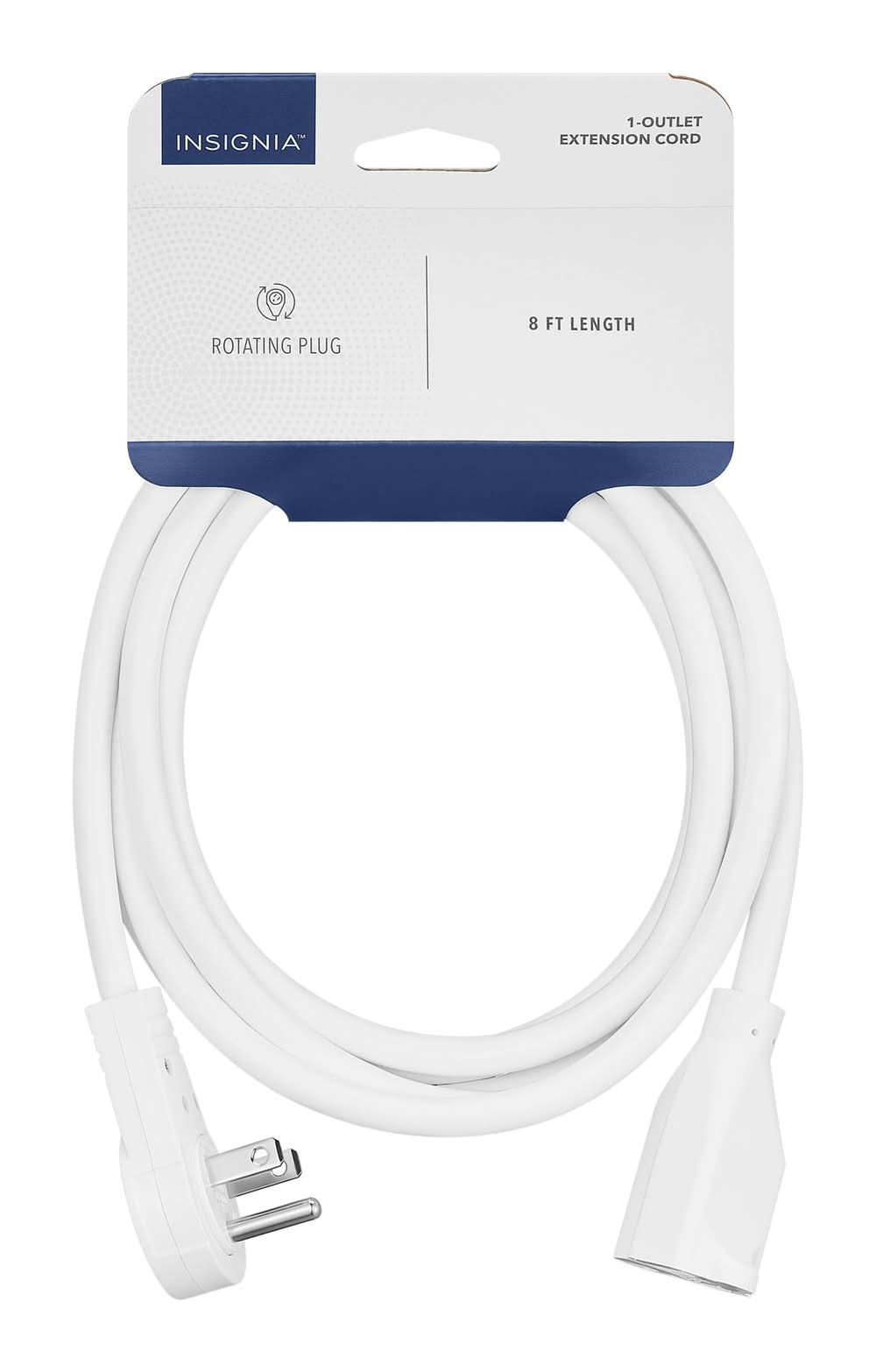 Insignia 16 Awg Indoor Extension Power Cord With Rotating Plug, 8 ft, White