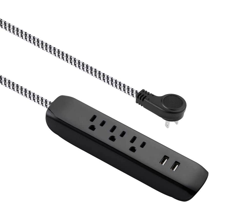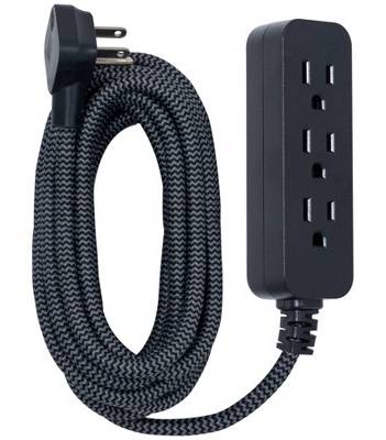 General Electric 3-Outlet Long Extension Braided Cord, 15 ft, Black-Gray