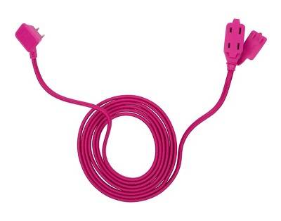 Globe Electric Fabric Extension Cord With 3 Polarized Outlets, 9 ft, Neon Pink