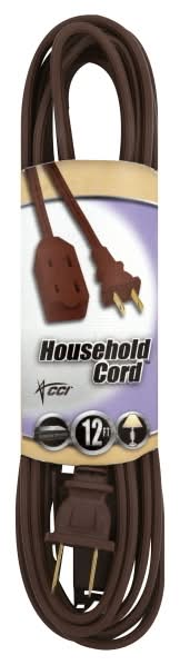 Coleman Cable Household Indoor Light Duty Extension Cord, Brown