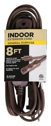 Indoor General Purpose Extension Cord, 8 Ft, Brown