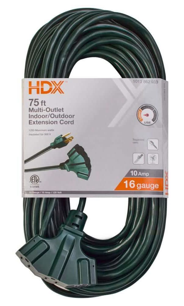 HDX 125V Light Duty Indoor & Outdoor Extension Cord With Multiple Outlet, 75 ft, Green