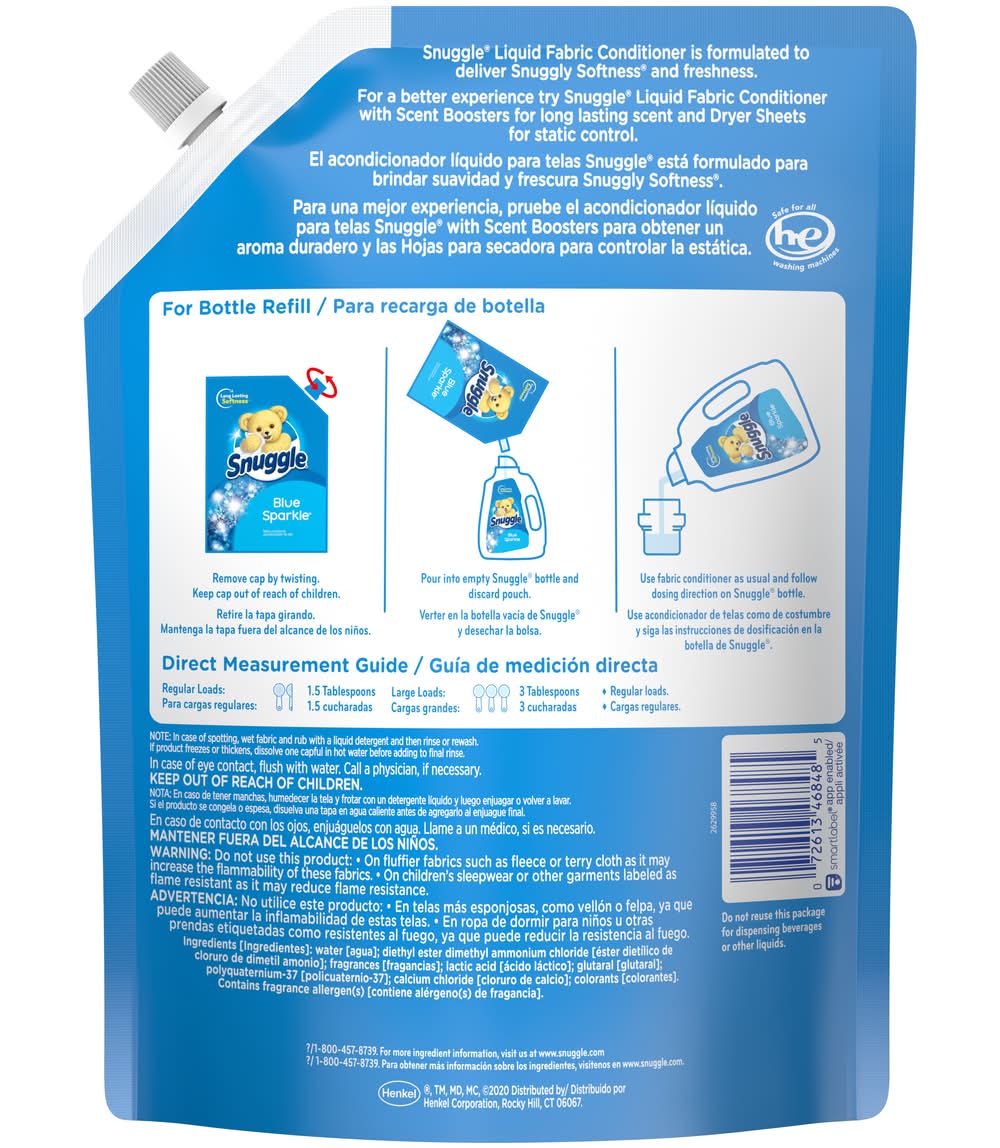 Snuggle Liquid Fabric Softener Easy-Pouch, Blue Sparkle, (48 fl oz, 60 ct)