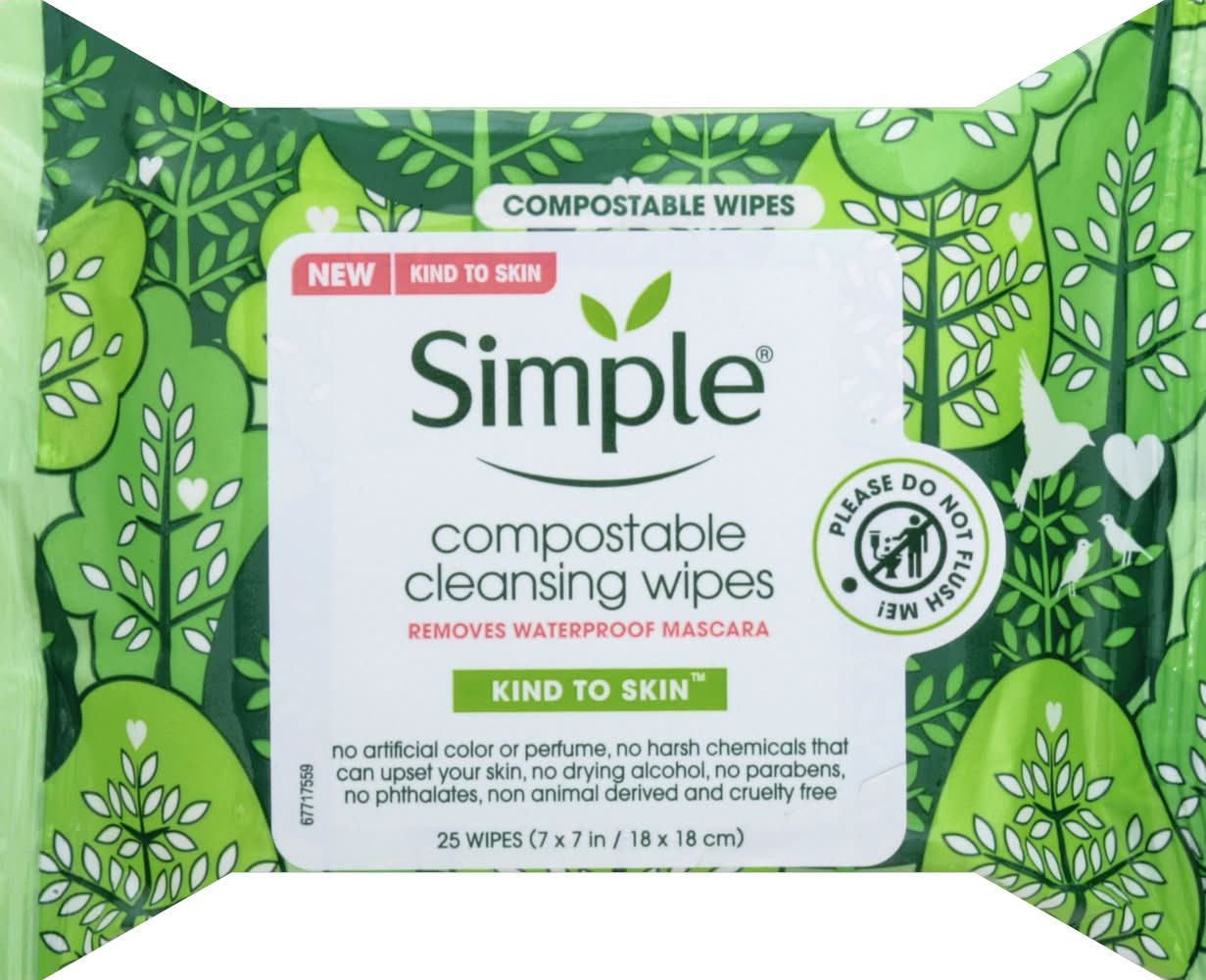 Simple Compostable Cleansing Wipes Kind To Skin (25 x 0.28 oz)