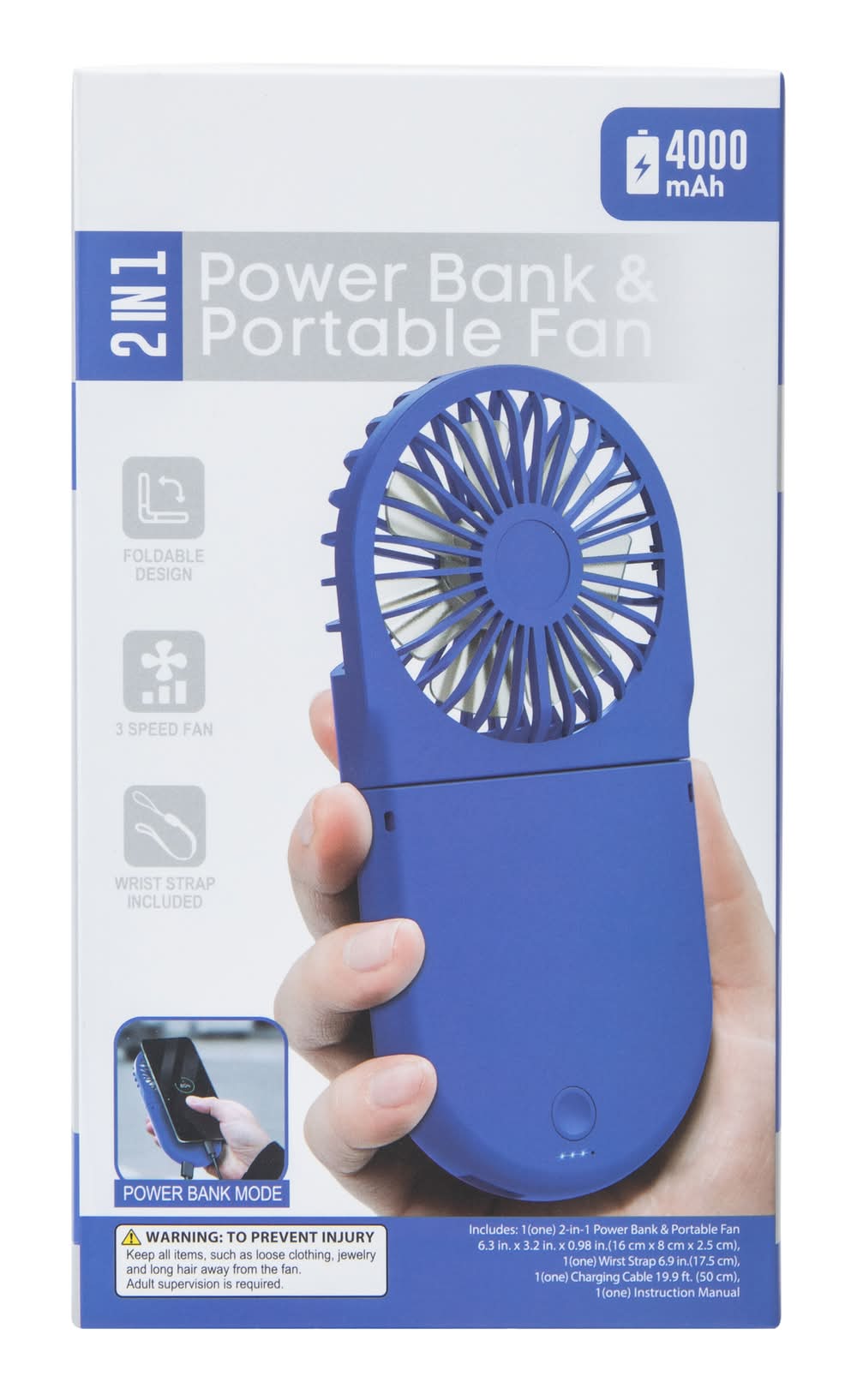 4000Mah 2-in-1 Power Bank & Portable Fan, Blue