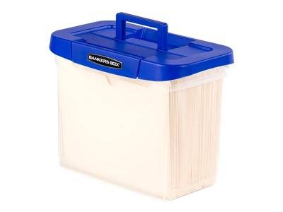 Bankers Box Heavy-Duty Plastic Portable File Storage Box (11h x 14-1/4w x 8-1/2d), Blue-Clear