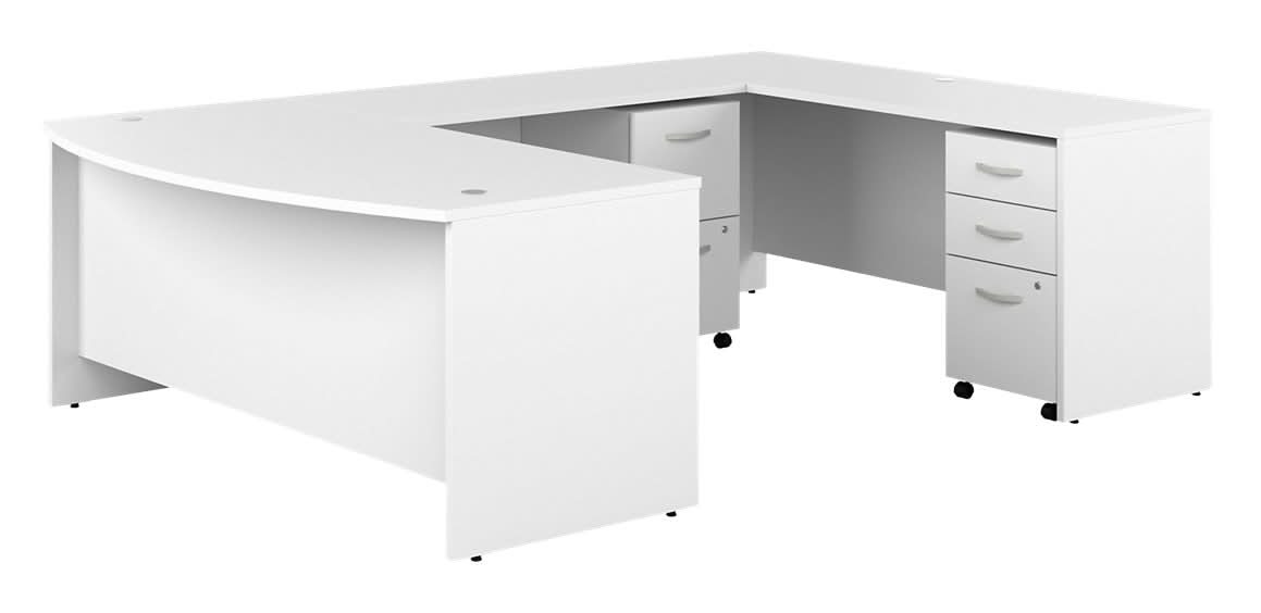 Bush Industries Furniture Studio C U Shaped Desk & Mobile File Cabinets, White
