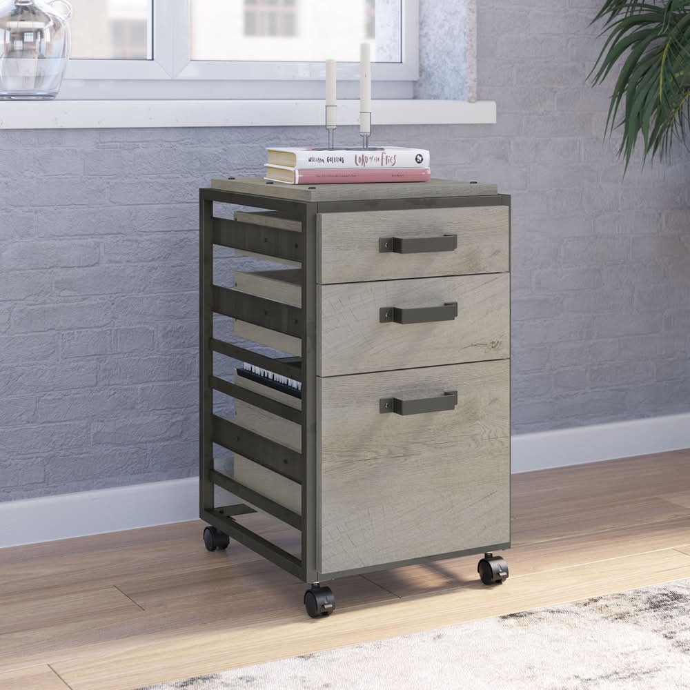 Bush Furniture Refinery 3 Drawer Mobile File Cabinet, Restored Gray