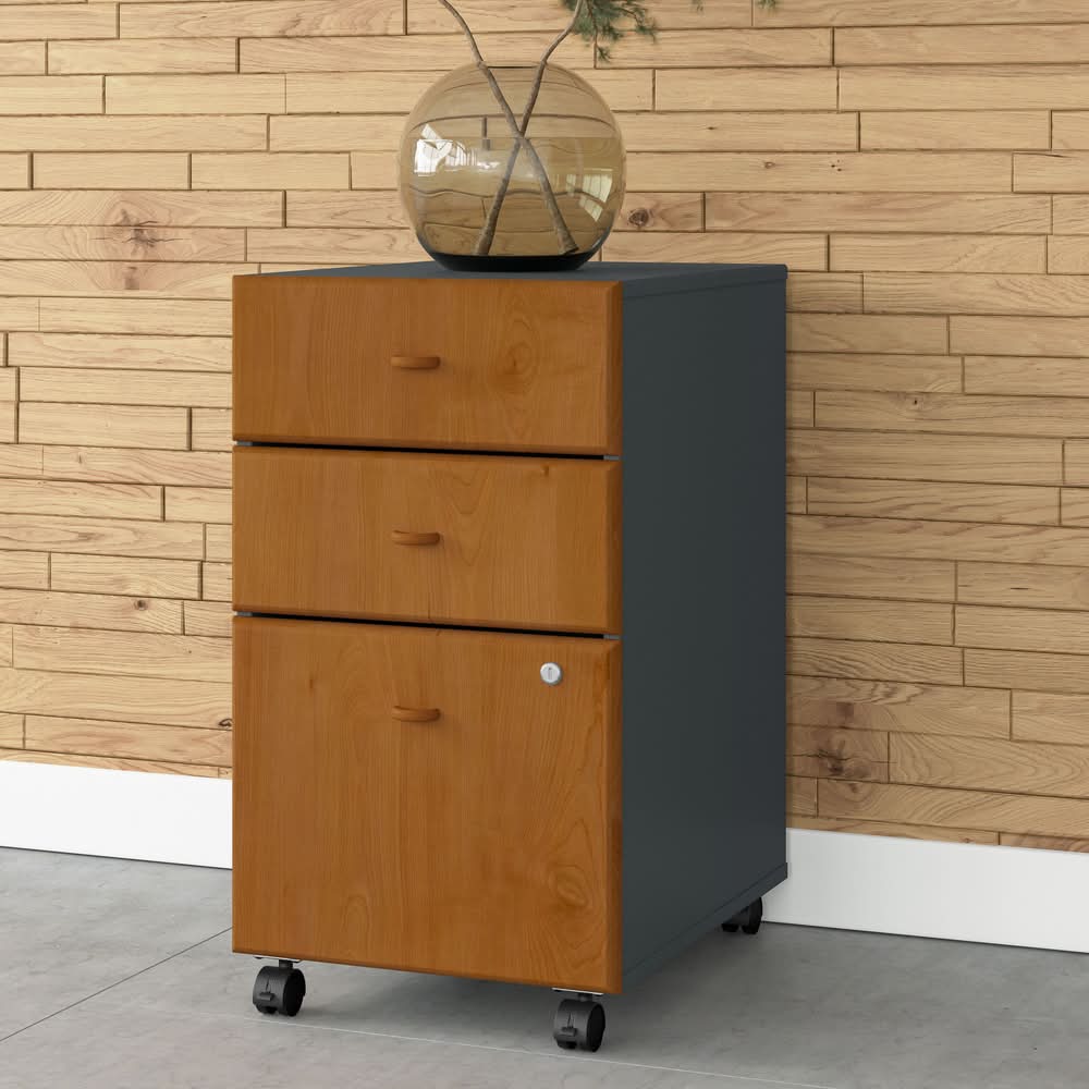 Bush Business Furniture Series a 3 Drawer Mobile File Cabinet, Natural Cherry & Slate