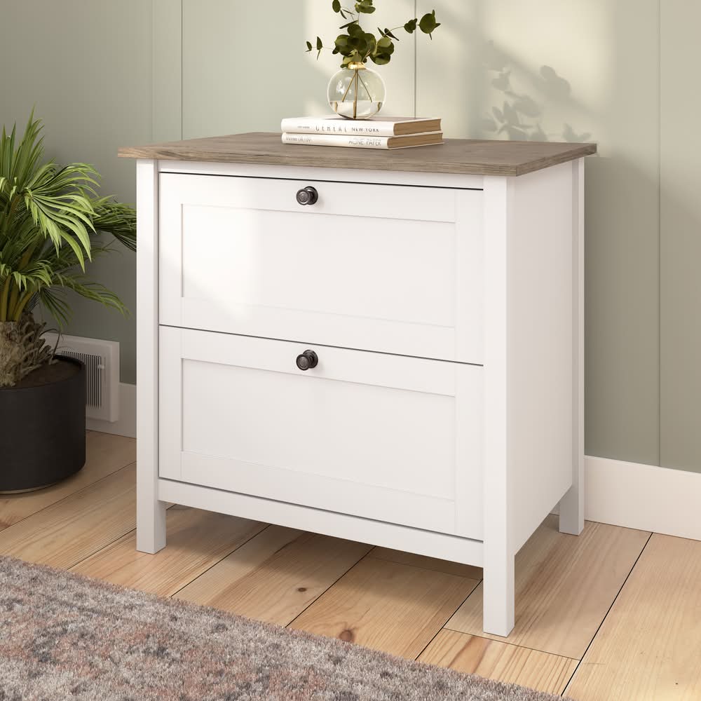 Bush Home Mayfield 2 Drawer Lateral File Cabinet, Pure White Shiplap Gray