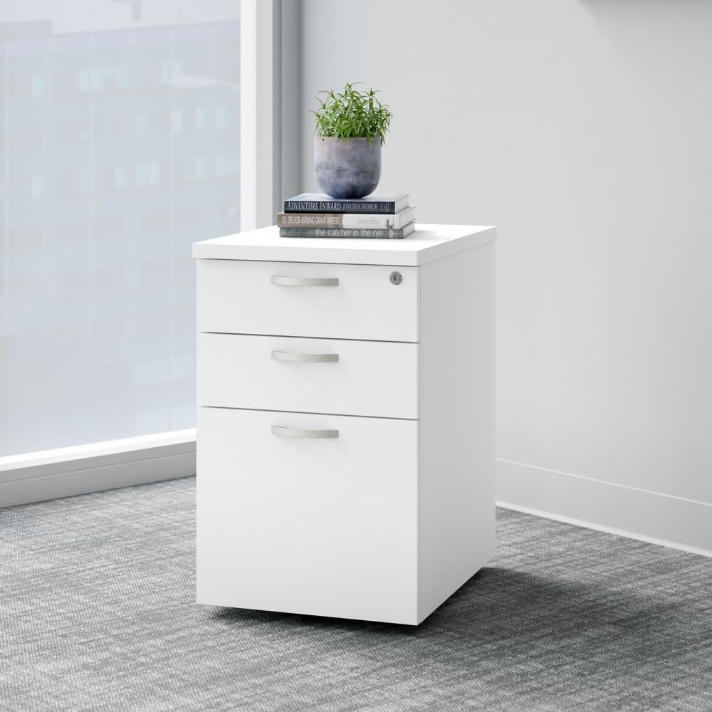 Bush Business Furniture Easy Office 3 Drawer Mobile File Cabinet, Pure White