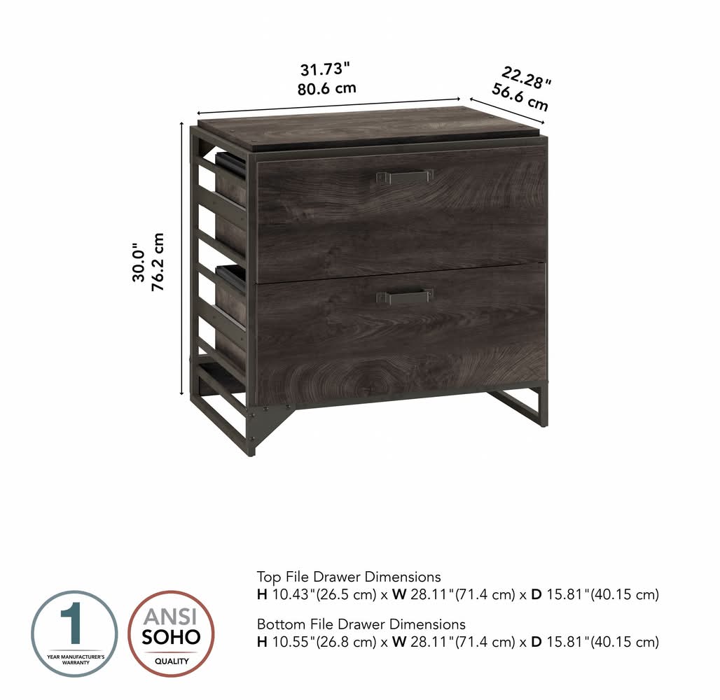 Bush Home Salinas 2 Drawer Lateral File Cabinet, Vintage Black
