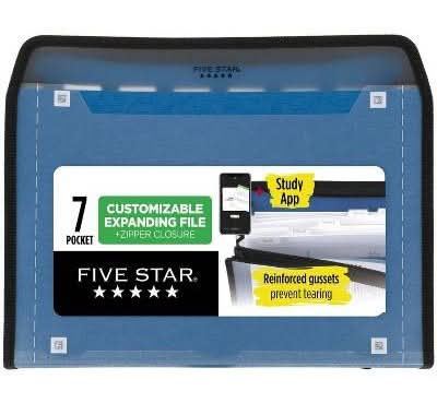 Five Star 7 Pocket Zipper Expanding File With Study App, 13.75" x 10.75", Blue