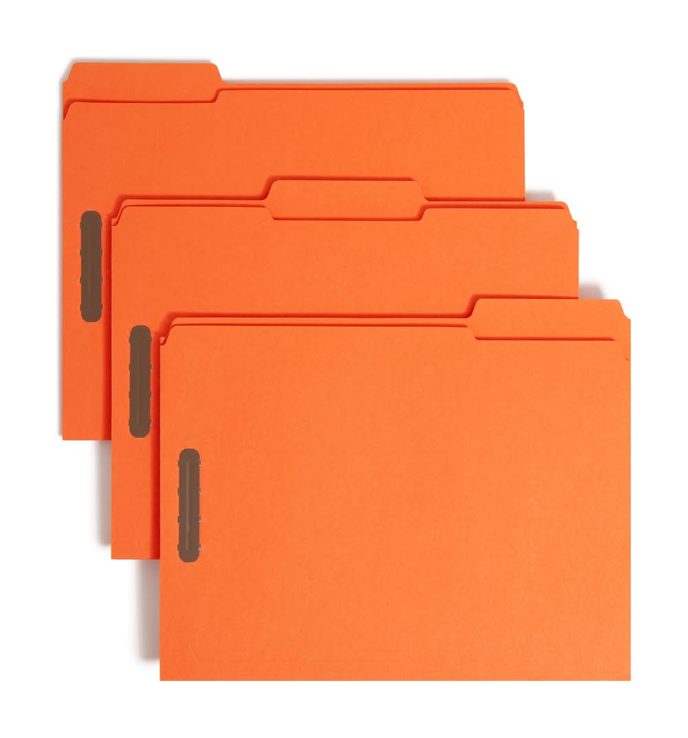 Smead Reinforced 1/3 Cut Tab Fastener File Folder, Orange (50 ct)